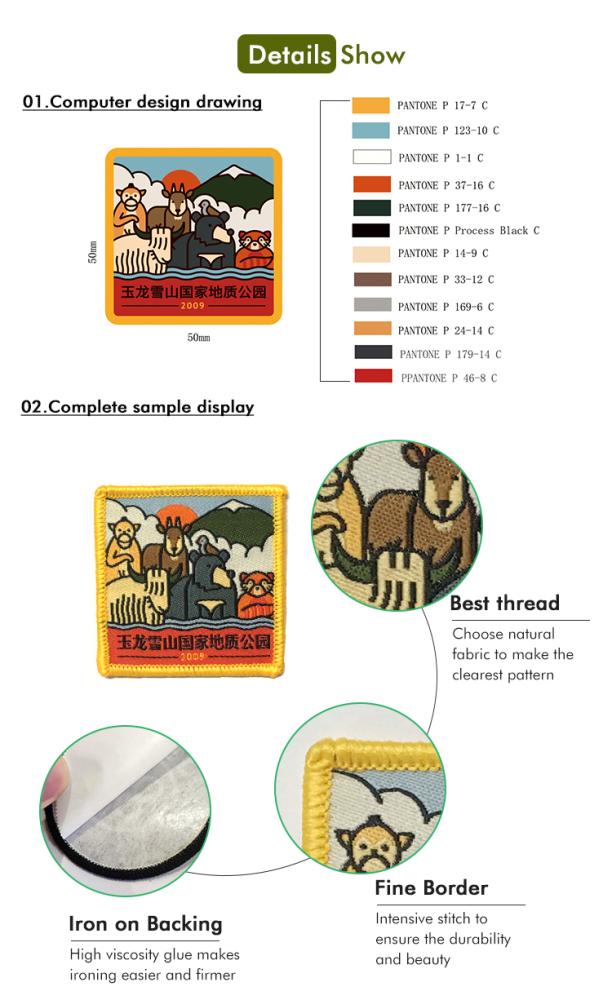 Woven patch,washable,can be very small artwork or words,never color faded |